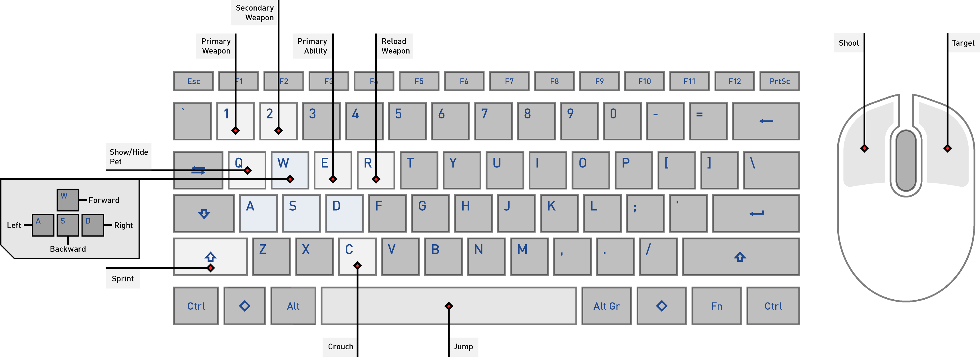 * The “Q” key for deploying or hiding the pet